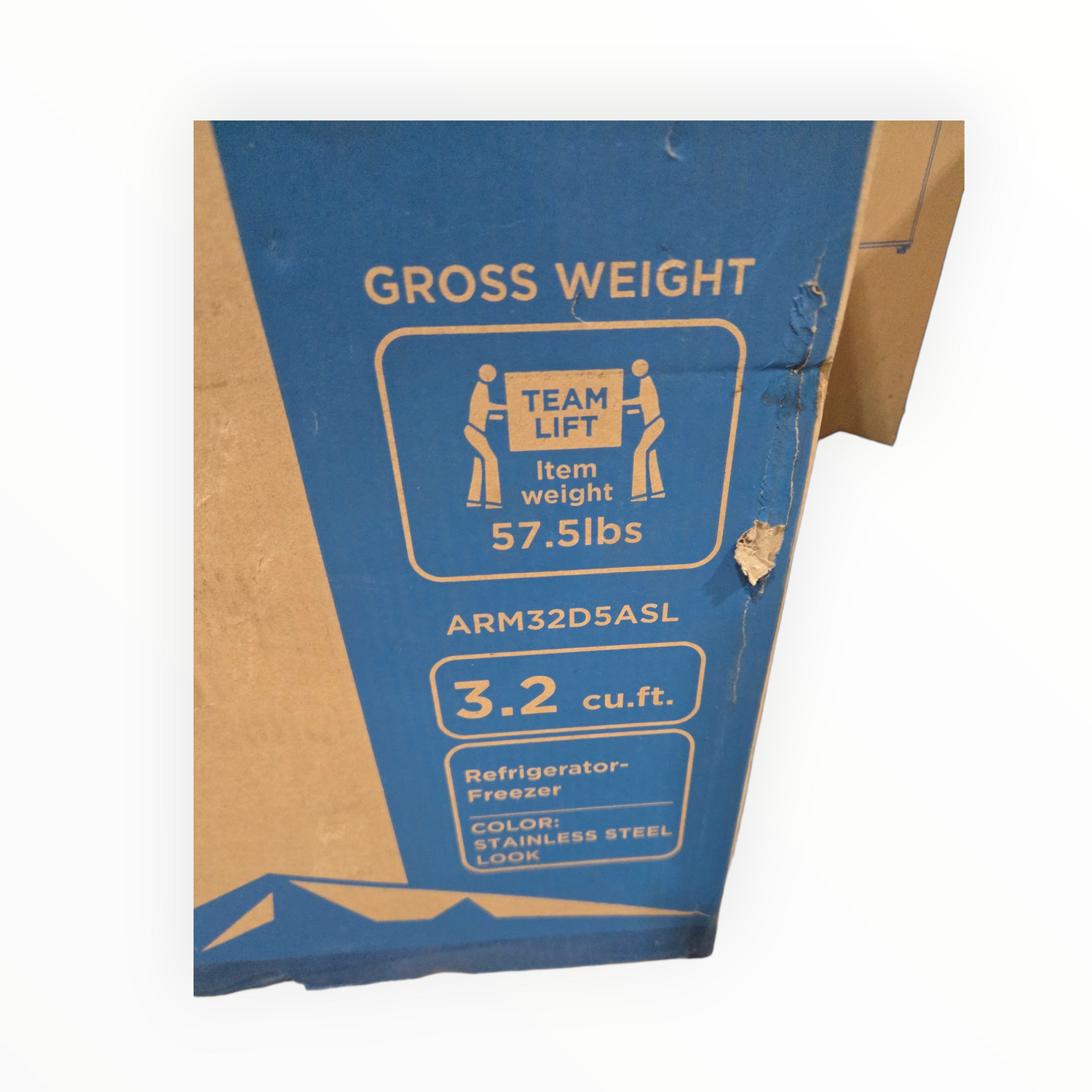 Arctic King 3.2 Cu ft Two Door Mini Fridge with Freezer, Stainless Steel, E-Star - IN STORE PICKUP ONLY