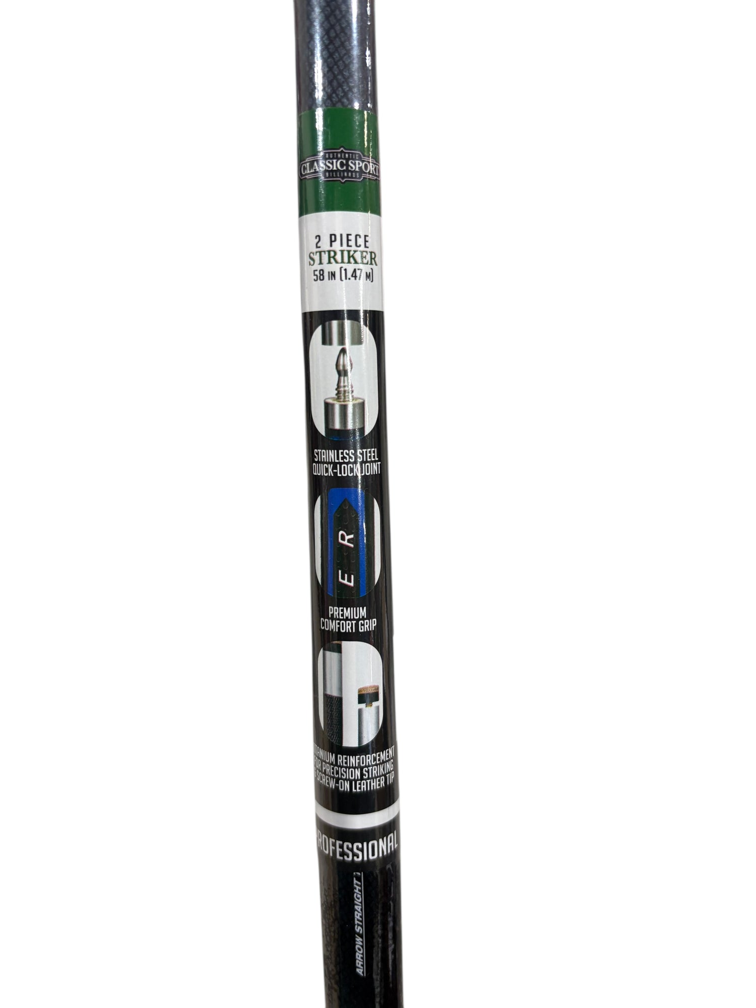 - This 58-inch, 2-piece billiard cue combines fiberglass composite construction with professional-grade performance features. The aluminum quick-lock joint delivers a solid one-piece feel while maintaining easy portability and assembly. Its 21-ounce weight strikes an ideal balance between power and control, accommodating both aggressive breaks and delicate finesse shots. The ergonomic PU foam grip minimizes hand fatigue and reduces unwanted cue rotation during play. A replaceable hardened leather tip enables precise spin application and angle execution, with straightforward screw-on maintenance for long-term reliability and customization options.