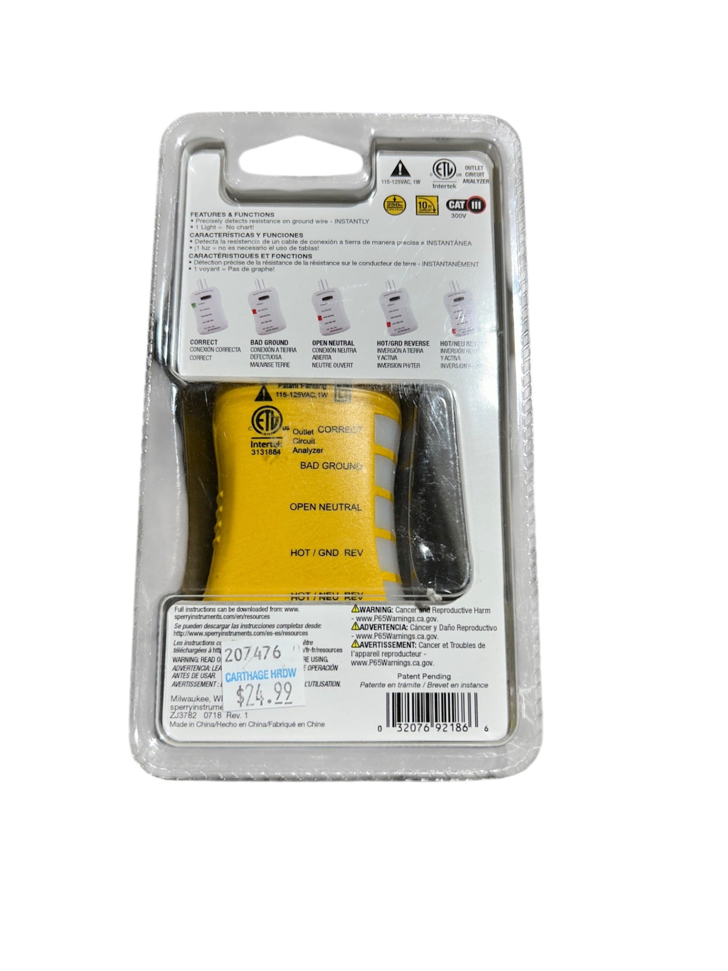 Sperry Instruments, HGT6520, Stop Shock II, GFCI Outlet Circuit Analyzer