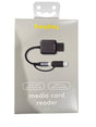 Effortlessly transfer data with Heyday's Black Card Reader. This USB-C to USB-A adapter connects seamlessly to your devices, providing access and management of SD and microSD cards. Designed for easy portability, its lightweight construction allows for convenient transportation in a backpack.