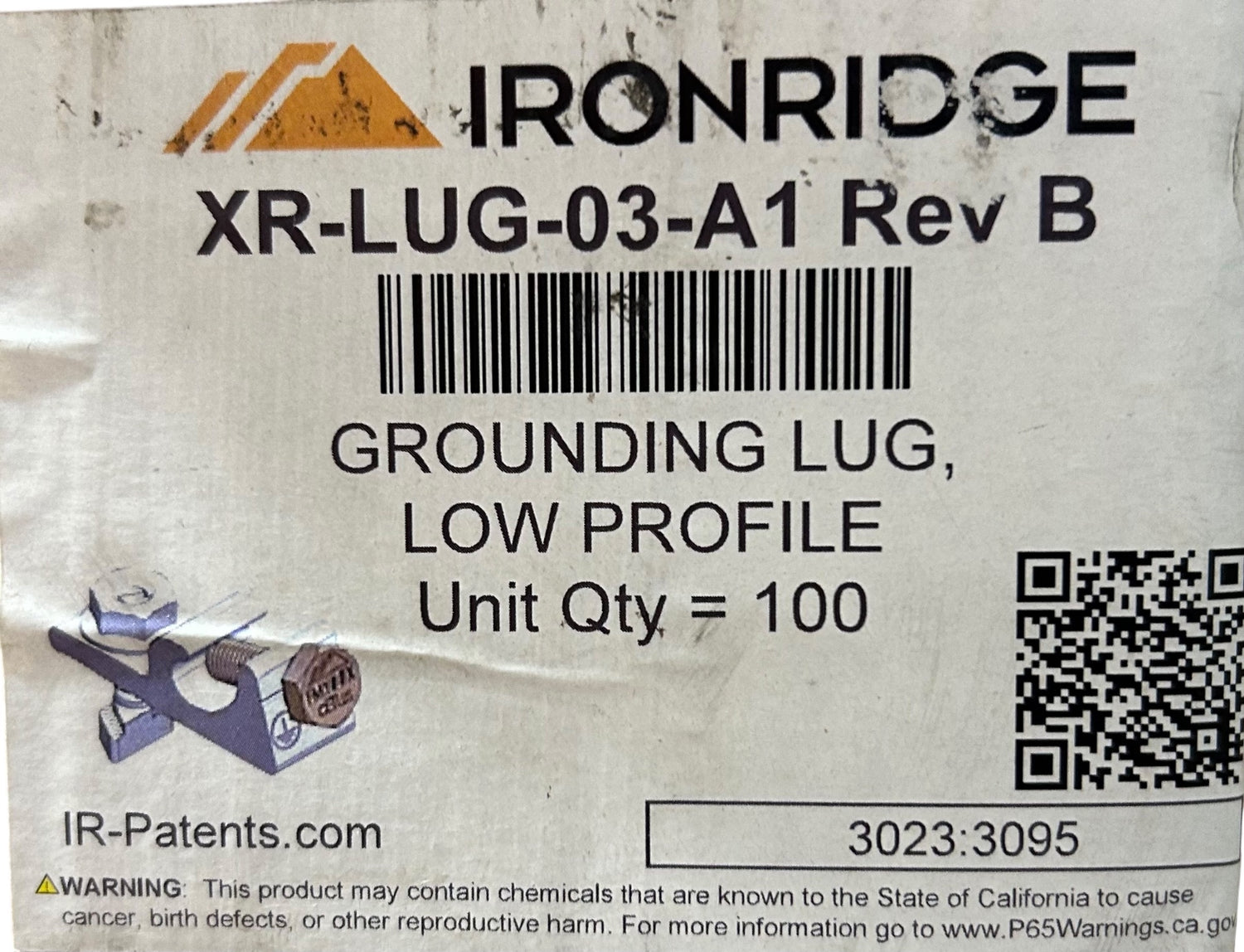 IronRidge XR‑LUG‑03‑A1 — Grounding Lug for XR Rails, Rev B