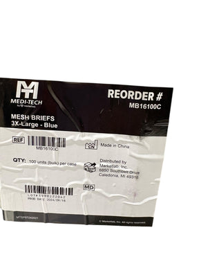 Medi-Tech, MB16100, Mesh Briefs, 3X Large, Blue, Case of 100 is backordered and will ship as soon as it is back in stock.