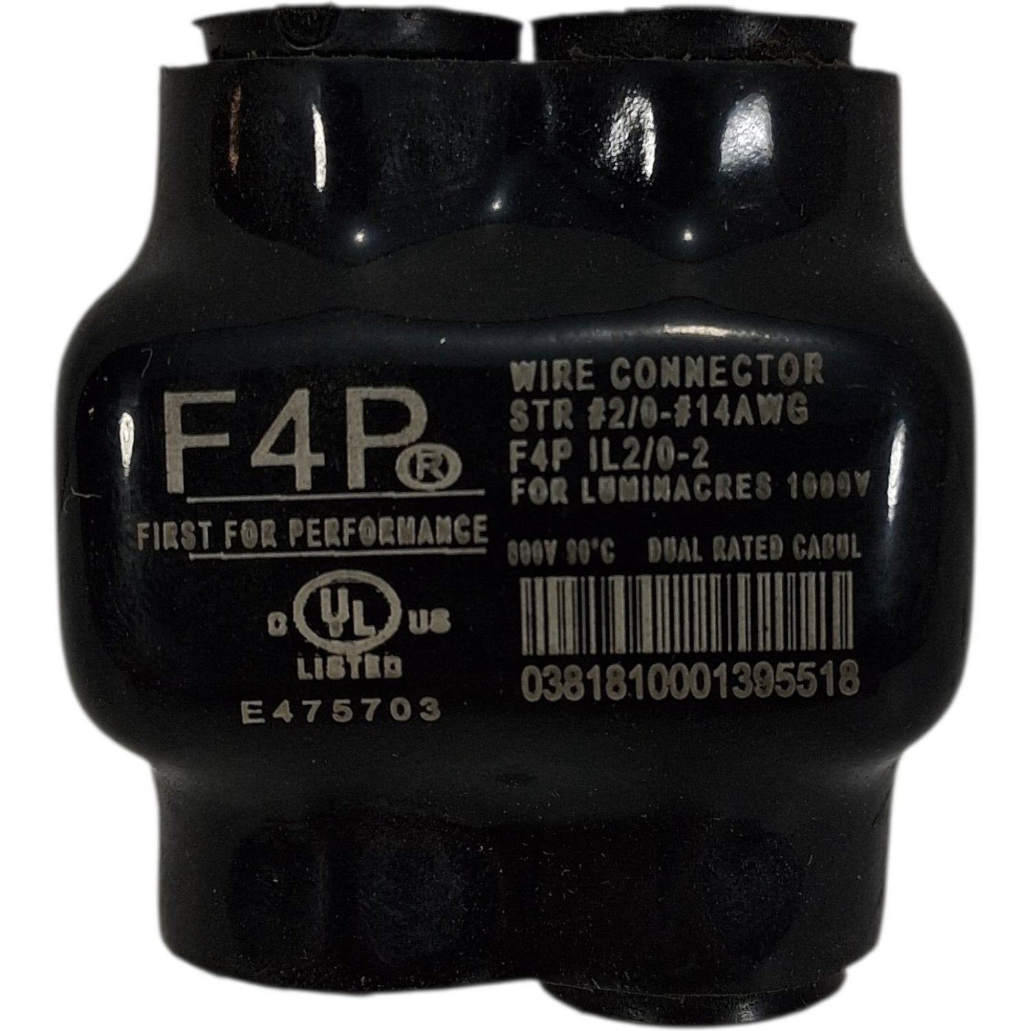The F4P IL2/0‑2 is a 2‑port, dual‑entry insulated aluminum connector designed for fast, reliable splicing and tapping of 2/0 AWG conductors. Part of F4P’s insulated multi‑tap series, this connector features a durable plastisol housing and comes pre‑filled with oxide‑inhibiting compound for long‑term corrosion resistance.