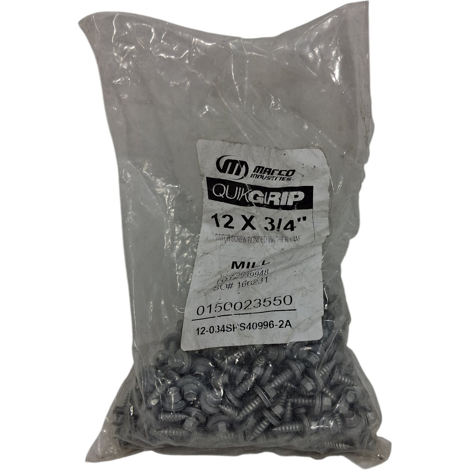 The MARCO QuickGrip 12 × 3/4" Mill Stitch Screw is a high‑performance fastener engineered for metal‑to‑metal applications. Its self‑drilling point, sharp threads, and mill finish make it ideal for roofing, siding, and light‑gauge steel assembly.